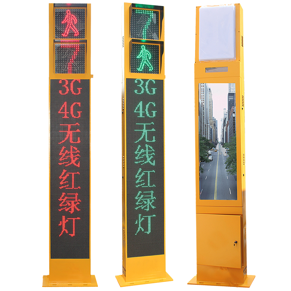 一體式廣告人行燈由機動信號燈、LED顯示屏、廣告吸塑燈箱、顯示屏控制卡、箱體組成